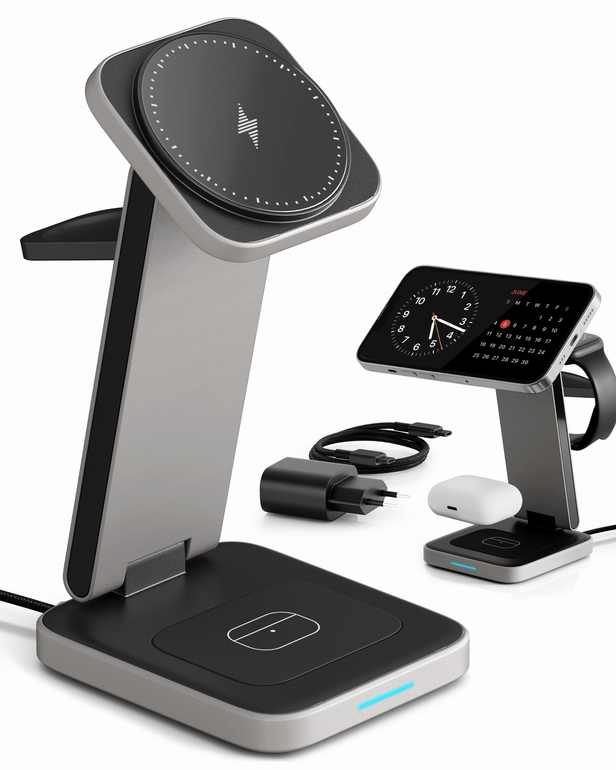 Il supporto è compatibile con vari modelli di iPhone, oltre a supportare la maggior parte delle versioni di Apple Watch e AirPods. Questo significa che, indipendentemente dal modello che possiedi, probabilmente potrai utilizzarlo senza alcun problema. Inoltre, il design è studiato per integrarsi in qualsiasi ambiente, sia a casa che in ufficio, grazie ai suoi materiali di alta qualità e al look minimalista.